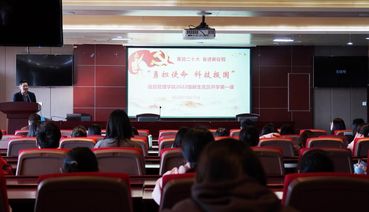 为迎接党的二十大胜利召开,引导党员进一步增强听党话跟党走的坚定信念。1012日下午,成人网 党委以“勇担使命,科技报国”为主题,举办喜迎二十大主题党日活动。学院党委书记姜迎春、党委副书记刘千里、情报学教师党支部书记颜嘉麒、党委秘书、专职组织员朱敏与全体新生党员共同参加本次活动。活动由学院党委副书记刘千里主持。