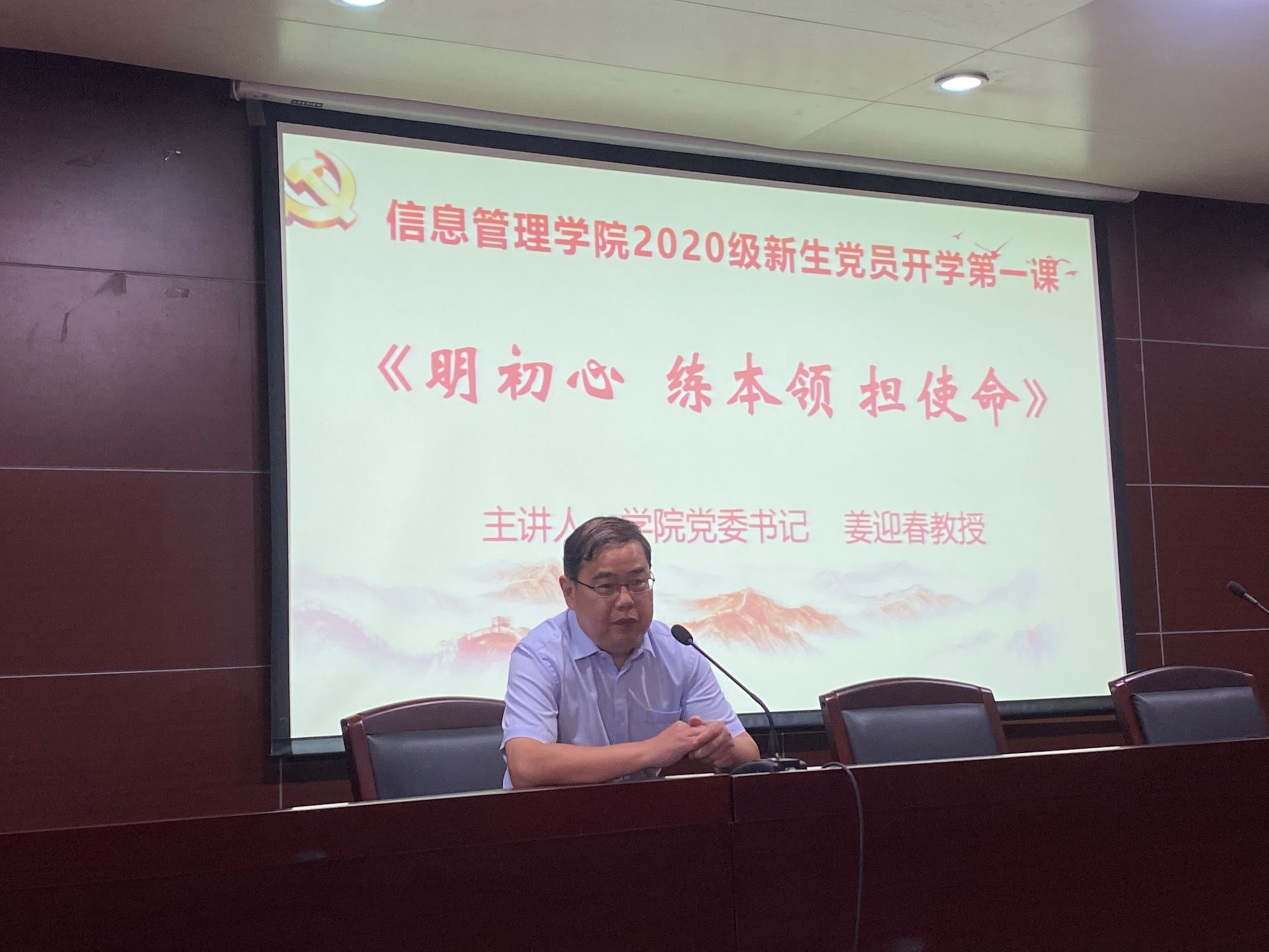党委以“不忘初心 牢记使命”为主题,举办“2020级研究生新生党员开学第一课”入学教育活动。学院党委书记姜迎春,党委秘书、专职组织员朱敏,团委书记李高杰,研究生新生党支部书记,与全体研究生新生党员共同参加学习活动。活动由学院团副书记李高杰主持。