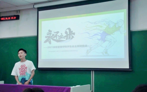学生会主席张子涵同学代表第十六届学生会作题为《以人为本,做需求为先的服务者;凝心聚力,做温暖高效的同行人》的工作报告。