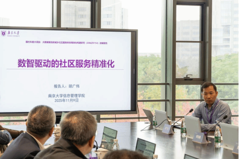 胡广伟教授汇报了国家社会科学重大项目——大数据驱动的城乡社区服务体系精准化构建研究(20&ZD154)——在数智驱动、动态精准、智能服务、主动进化等方面精准化构建社区服务体系形成的主要成果,并就数智环境下社区服务精准化在数字包容、伦理规制、韧性进化等方面的挑战应对寻求专家洞见。