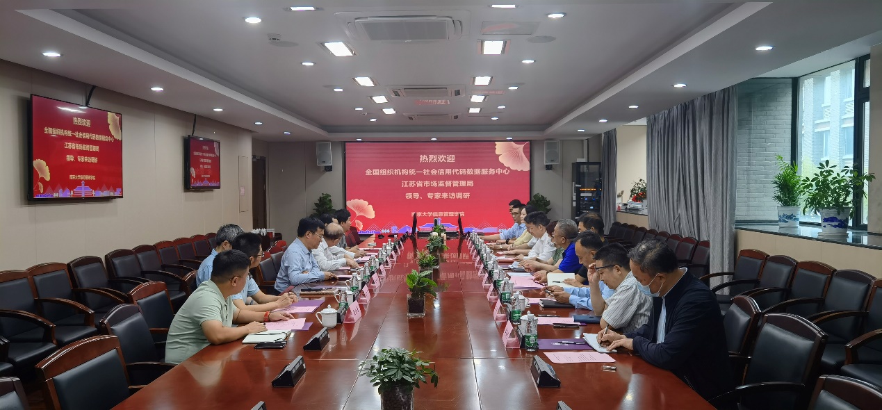831日,全国组织机构统一社会信用代码数据服务中心党委书记、副主任马思宇,江苏省市场监督管理局一级巡视员冯新南一行围绕统一社会信用代码的政产学研赴成人网 调研,听取成人网 有关大数据与创新应用的汇报,江苏省市场监督管理局有关部门领导陪同。