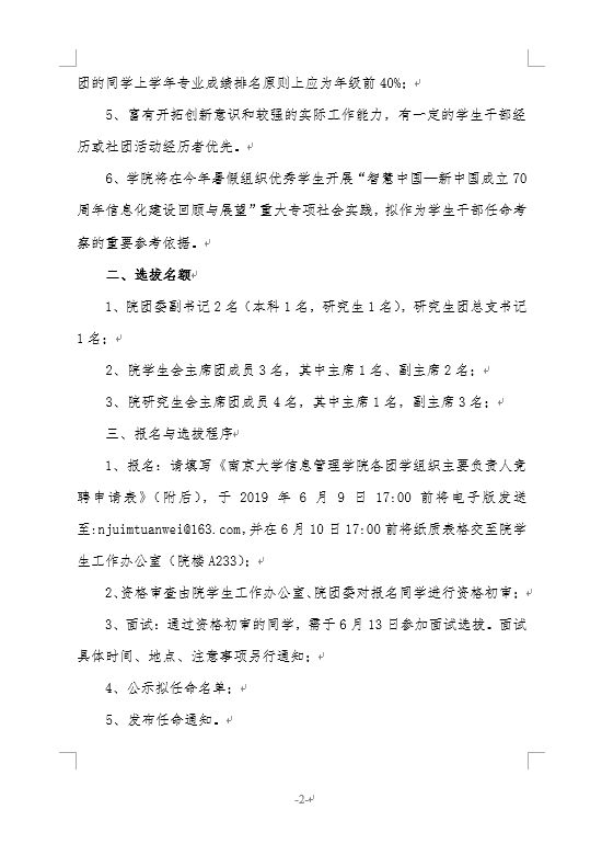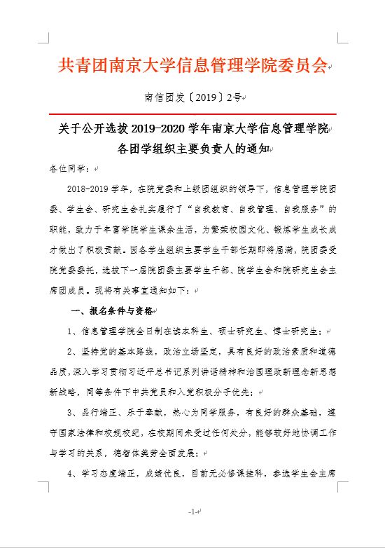 关于公开选拔2019-2020学年成人网 各团学组织主要负责人的通知