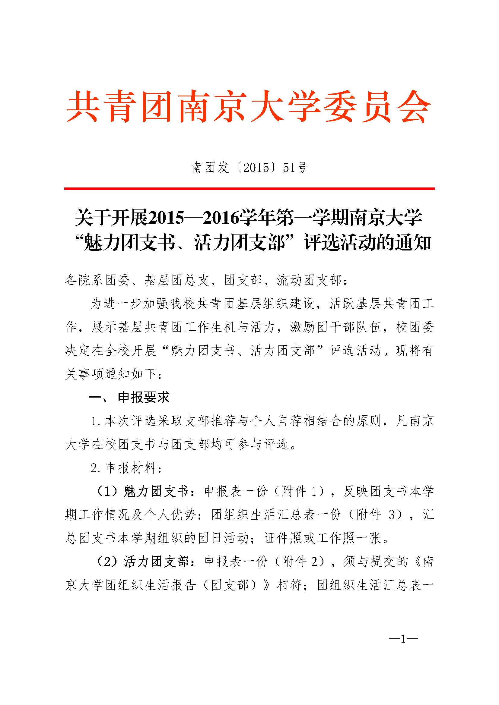 关于开展2015—2016学年第一学期成人网 “魅力团支书、活力团支部”评选活动的通知