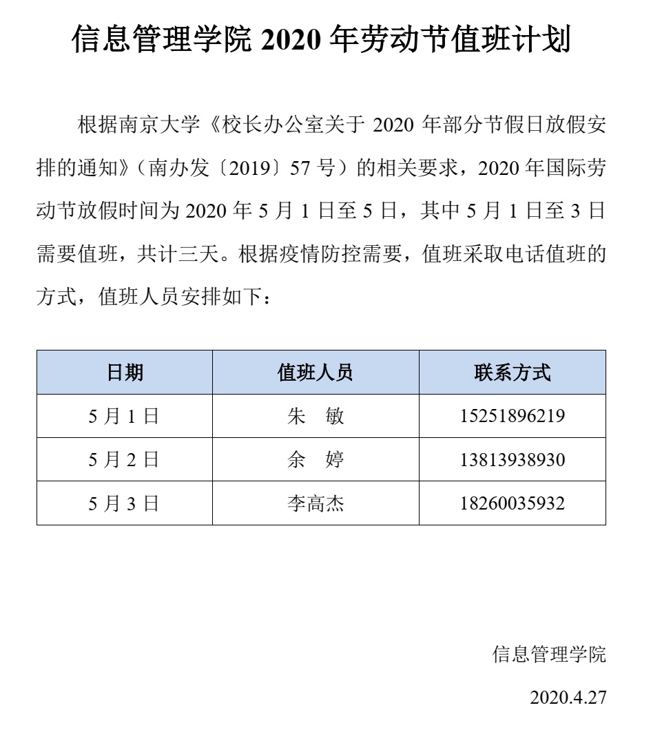 成人网 2020 年劳动节值班计划