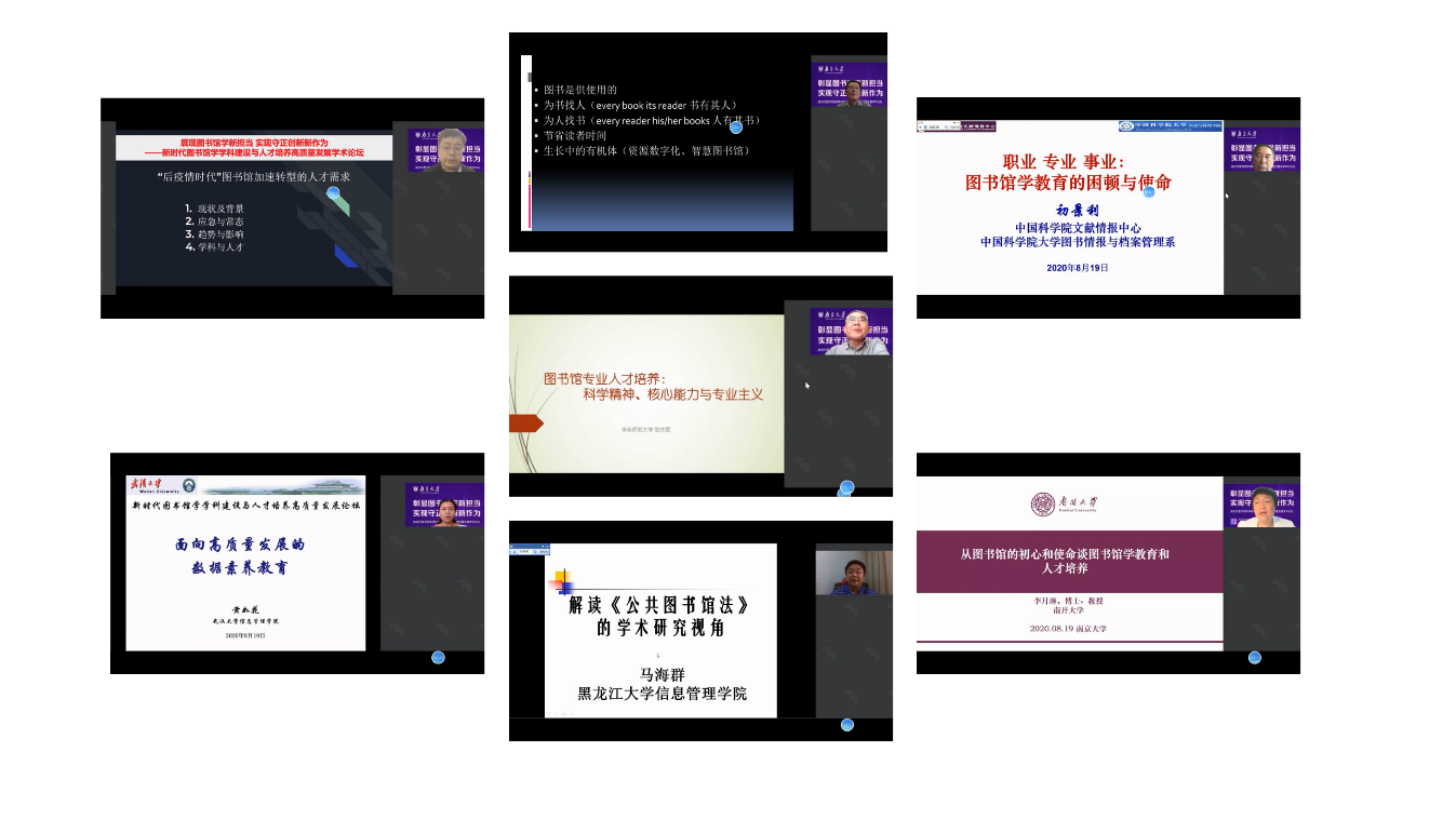 2020819日,由成人网 主办的“新时代图书馆学学科建设与人才培养高质量发展”学术论坛成功召开。论坛邀请了来自北京大学、武汉大学、成人网 、中国人民大学、中山大学等多所高校,国家图书馆、上海图书馆、南京图书馆等公共图书馆的三十余名专家学者,以及图书馆学相关学术期刊代表,共同就新时代图书馆学学科建设与人才培养进行专题报告与研讨,吸引了780余名专家学者、业界人士和研究生线上参会。