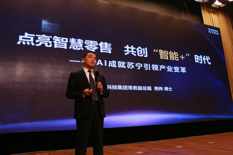 第四场演讲由山东财经大学刘培德教授主持。苏宁科技集团常务副总裁荆伟博士为大家分享了关于AI 点亮智慧、共建“智能+ ”时代的思考。他立足于产业的角度,从AI 成就苏宁引领产业变革角度展现了AI 在业界的作用,展现了技术与产业结合,以更好为产业的服务。