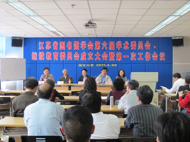 2011年4月26日,江苏省图书馆学会第六届学术委员会和继续教育委员会成立大会及第一次工作会议在我校召开。江苏省图书馆学会副理事长、我校信息管理系主任孙建军教授、南京图书馆副馆长许建业研究馆员、江苏省图书馆学会秘书长吴林研究馆员及全省图书馆系统馆长及部主任近60人参加大会。