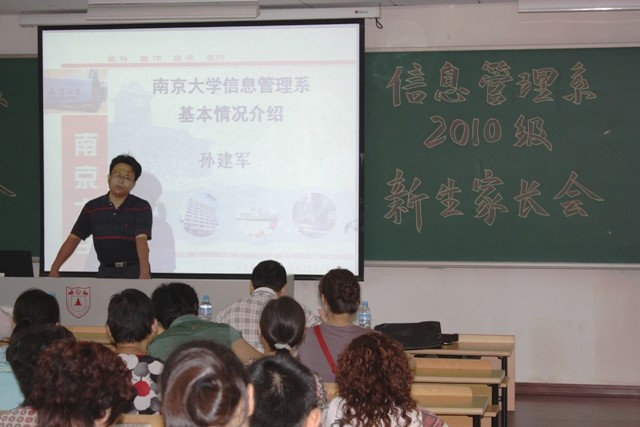 9月5日上午10点,信息管理系2010级本科生家长见面会在仙林校区教学楼II区305教室举行。系主任孙建军、党委书记江莹出席了家长见面会。会议由系党委副书记戴咏梅主持。