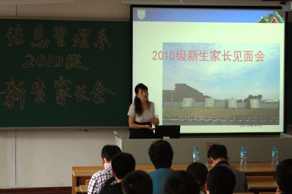 信息管理系的发展历程,着重介绍了信息管理系近些年来在学科发展、队伍建设、人才培养等方面取得的一系列成绩,指出我系本科生的培养目标是“具有国际化视野,善于多元化交流,人格完善、专业精通的优秀人才”,希望家长与系里老师积极配合共同努力实现这一目标。江莹书记向新生家长介绍了成人网