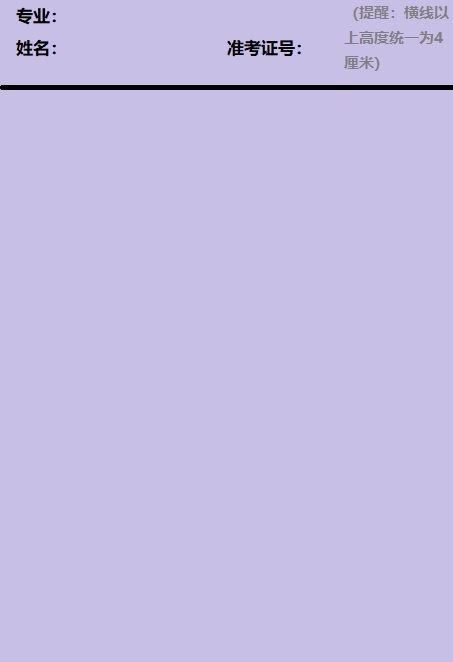 在每门笔试开始之前,请考生提前准备不少于3张白色A4纸作为答题纸,按下图格式在纸上画出密封线,并写明专业、准考证号、姓名。如需要用多张答题纸,每张答题纸均应符合该格式,且应在答题纸下方写明页码(如共有3页,应分别写明3-1、3-2、3-3)。考生可额外准备草稿纸,但不得有任何其它字迹。